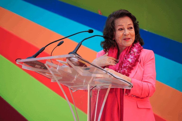 The celebration continued with the two 2025 honorary degree recipients. The first went to mixed-media artist and CalArts alum Barbara Carrasco (Art MFA 91), who was introduced by her friend, iconic labor leader and feminist Dolores Dolores Huerta.